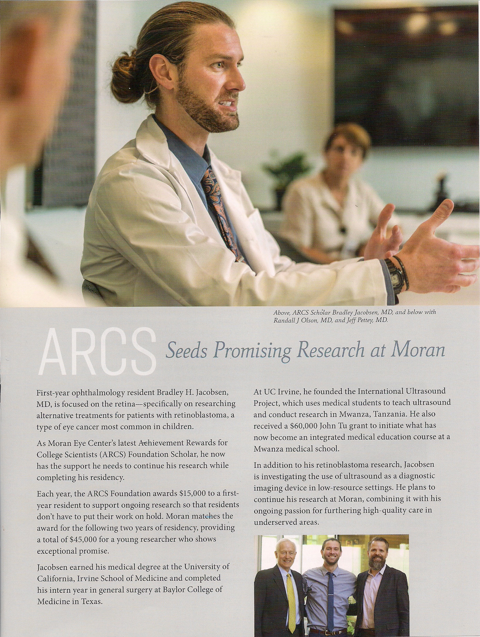 The February edition of the John A. Moran Eye Center Focus magazine contains an article about ARCS Scholar Bradley Jacobsen. The article is reprinted here with permission. ARCS Utah is so proud to be a sponsor of Dr. Jacobsen's research.